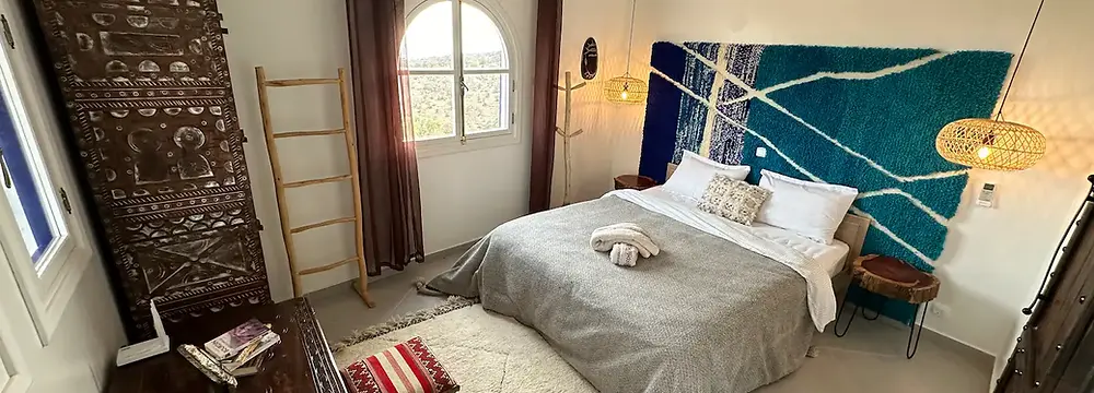 Embrace tranquility in the private double room with a queen bed. Perfect for 1 or 2 people, it includes its own ensuite bathroom for a truly delightful and seamless stay - Travel solo for 2580€ - Travel with a friend/partner for 1290€ each